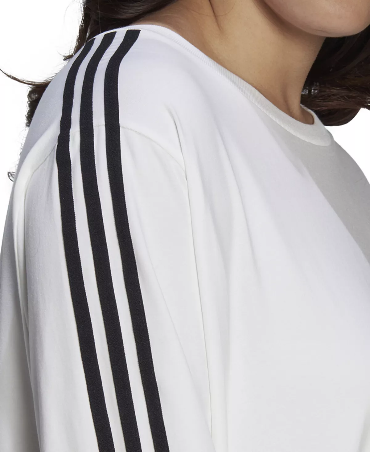 How does a timeless look stay fresh forever? Like this. Styled in fresh cotton, this plus size adidas tee steps out with 3-Stripes on the sleeves and comfy ribbed cuffs. It’s slightly stretchy and helps keep you comfortable no matter what you’ve got planned for the day.