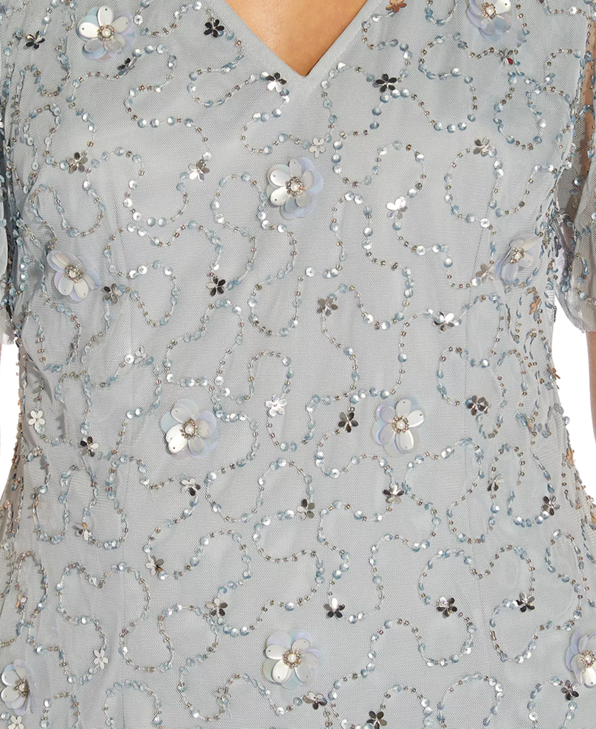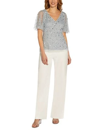 A beaded finish lends a glamorous touch to this flutter-sleeve top from from Adrianna Papell.