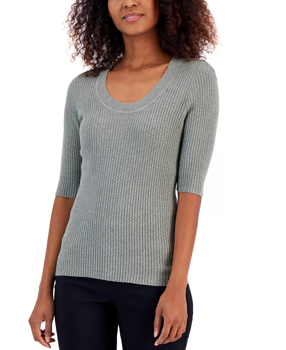Alfani Women’s Ribbed Elbow-Sleeve Sweater, Created For Macy’s