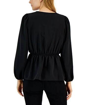 This chic Alfani top is styled with a V-neckline and a smocked waist for a flattering, stylish silhouette.