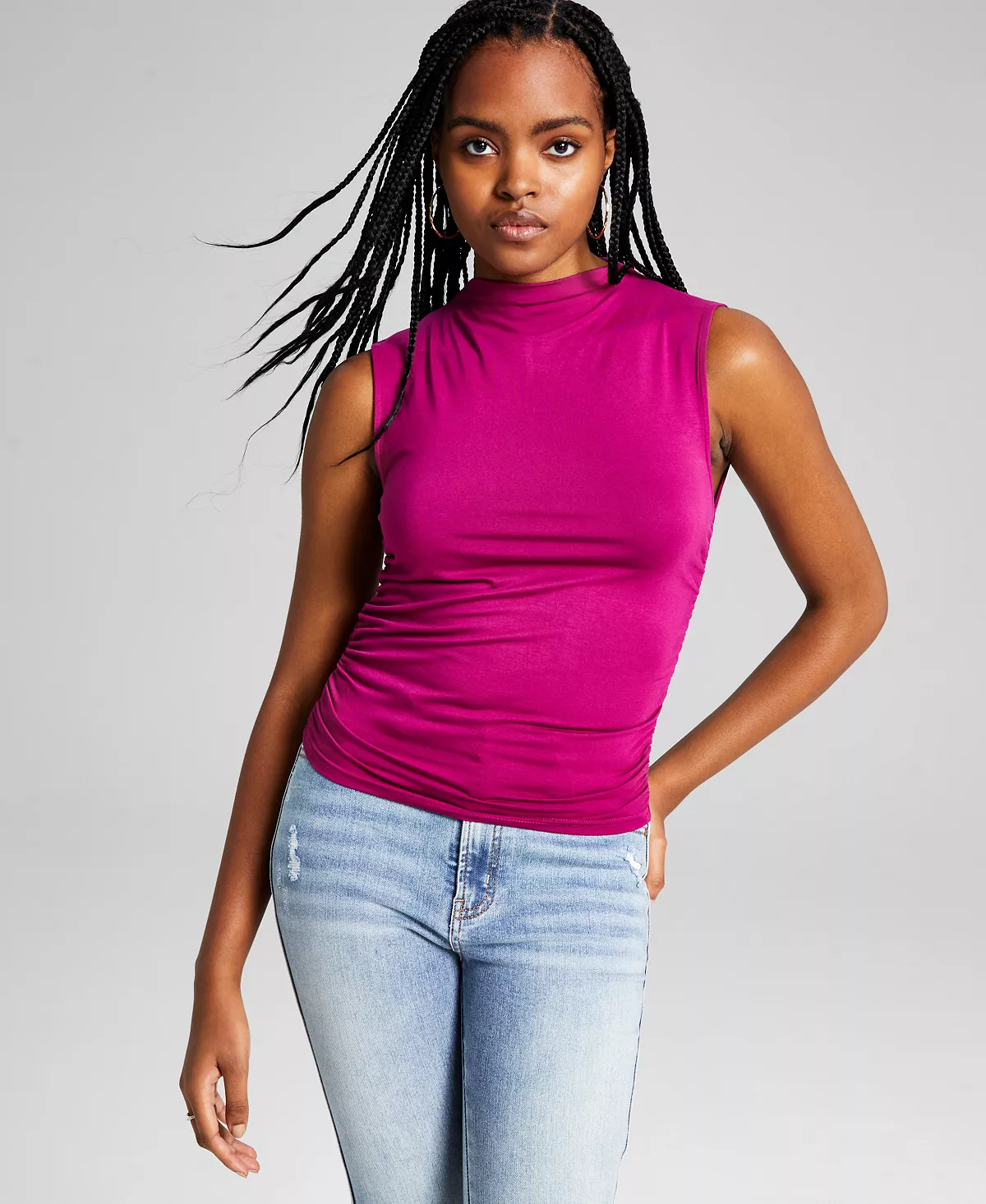 Side-ruching smooths and flatter the figure with this women’s top from And Now This, a charming addition to any well-rounded closet.