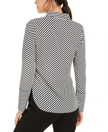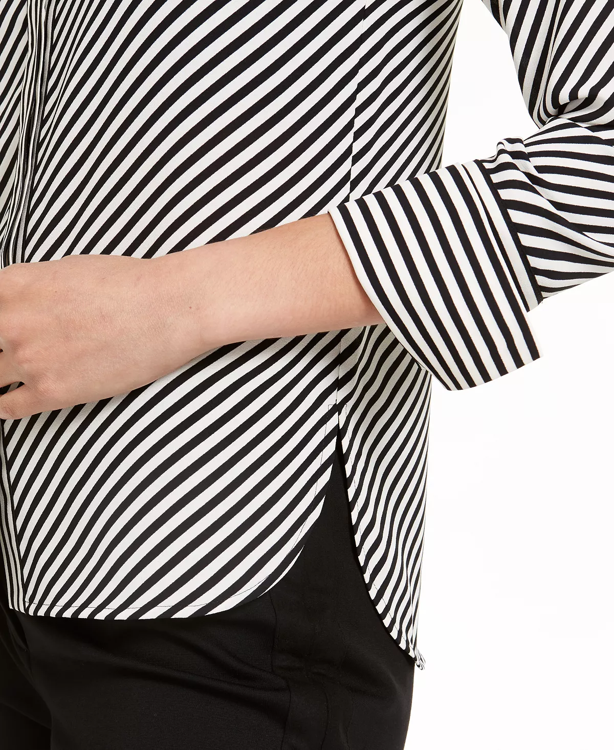 An essential building block for office outfits, this pretty blouse by Anne Klein features lovely details like slit cuffs and a rounded hem.