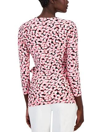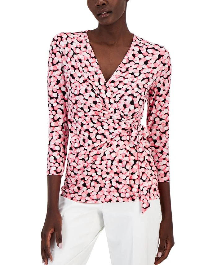 Update your work look with this on-trend 3/4-sleeve top from Anne Klein, with a chic tie-wrap silhouette.