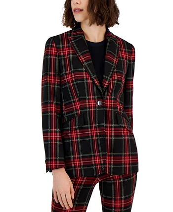 Infuse a festive feel to your professional style with Anne Klein’s plaid jacket.