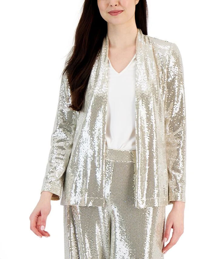 Step up your style for the holiday party with this gleaming sequin blazer from Anne Klein.