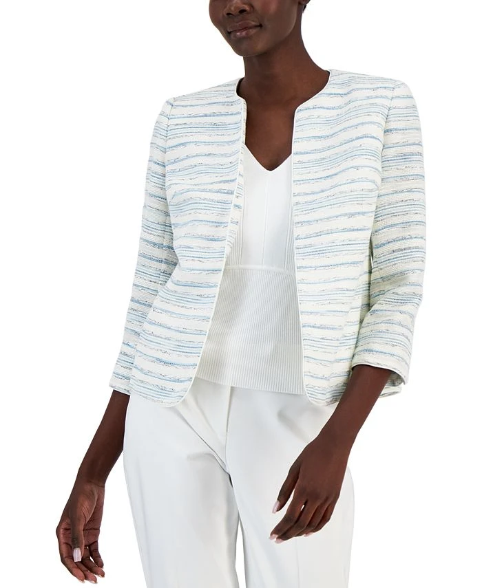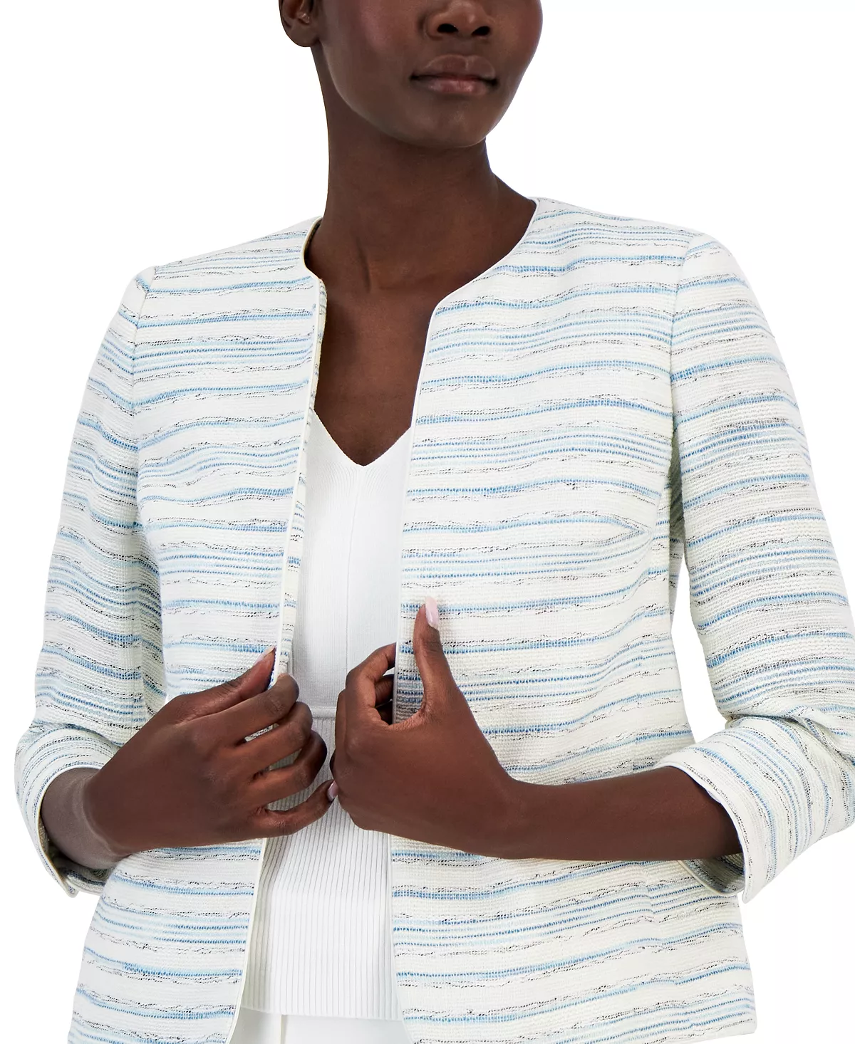 Top off your work look with this on-trend striped tweed jacket from Anne Klein.