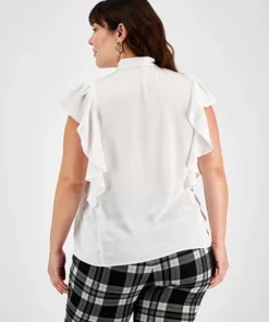 Top off your work look in timeless style in this plus size blazer from Bar III, featuring shoulder pads and allover plaid.