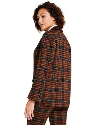 Bar III brings a timeless blazer back with this plaid style. A notch-collar and shoulder pads reinvent the silhouette.