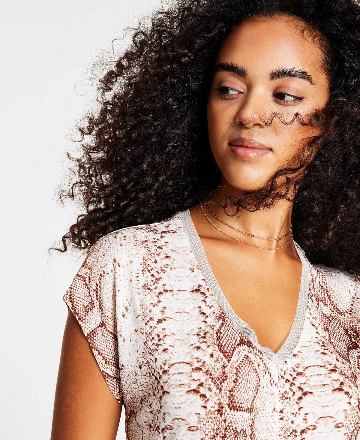 Bar III trims this adaptable top with light mesh along the neckline for updated style.