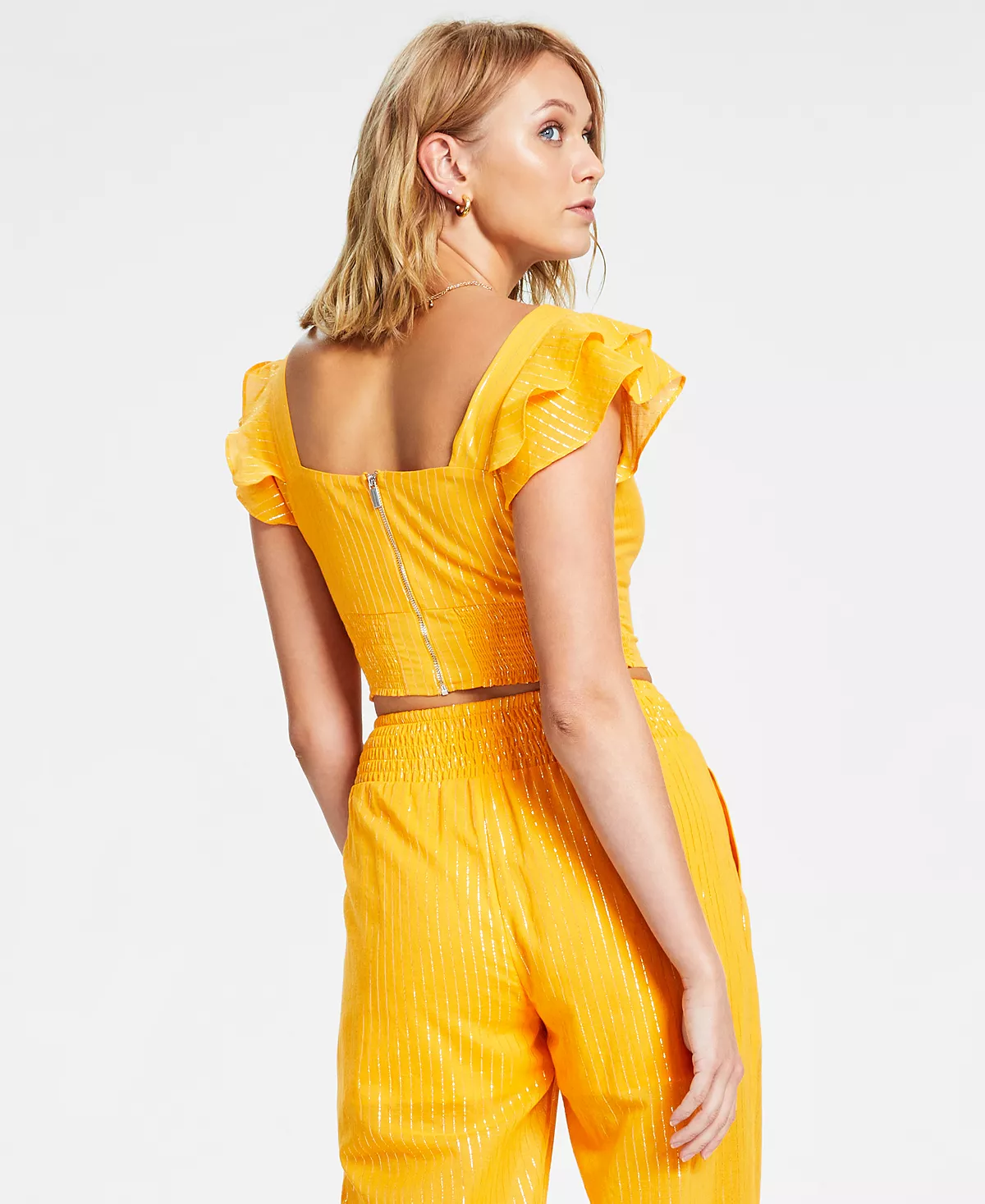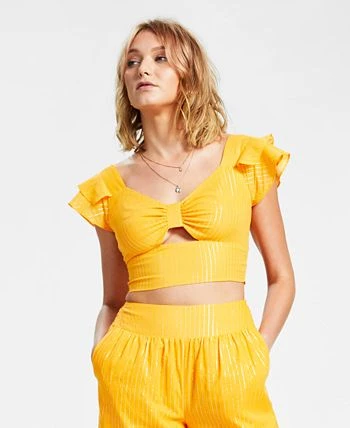 Delicate metallic stripes add a mega dose of glamour to this sweet cropped top from Bar III.