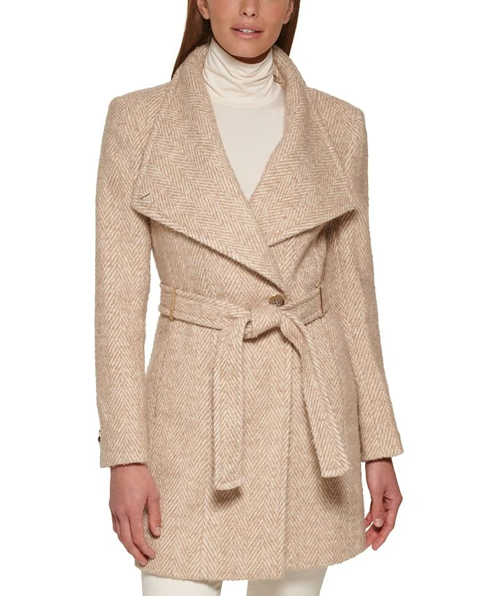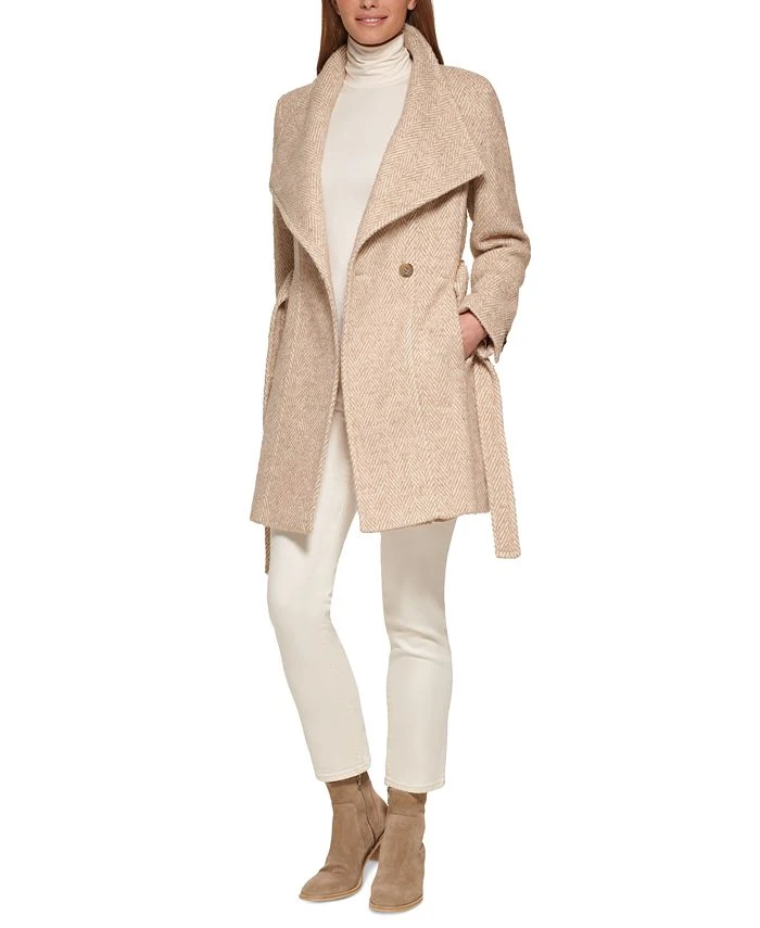 Give your look a gorgeous finish with this wrap coat from Calvin Klein, designed with a waist-defining belt and shawl collar.