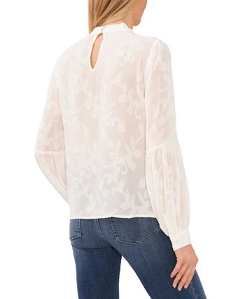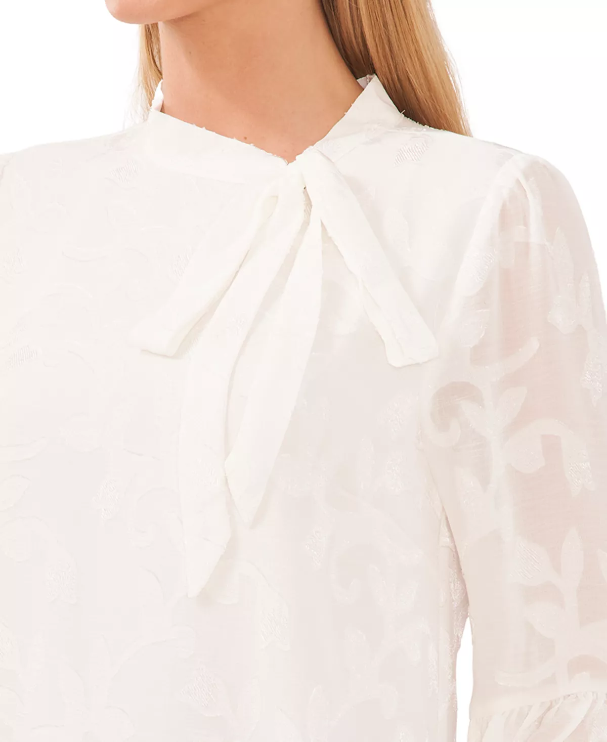 Leafy clip jacquard texture brings tone-on-tone style to this beautiful CeCe blouse that’s finely finished with a side neckline bow.