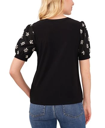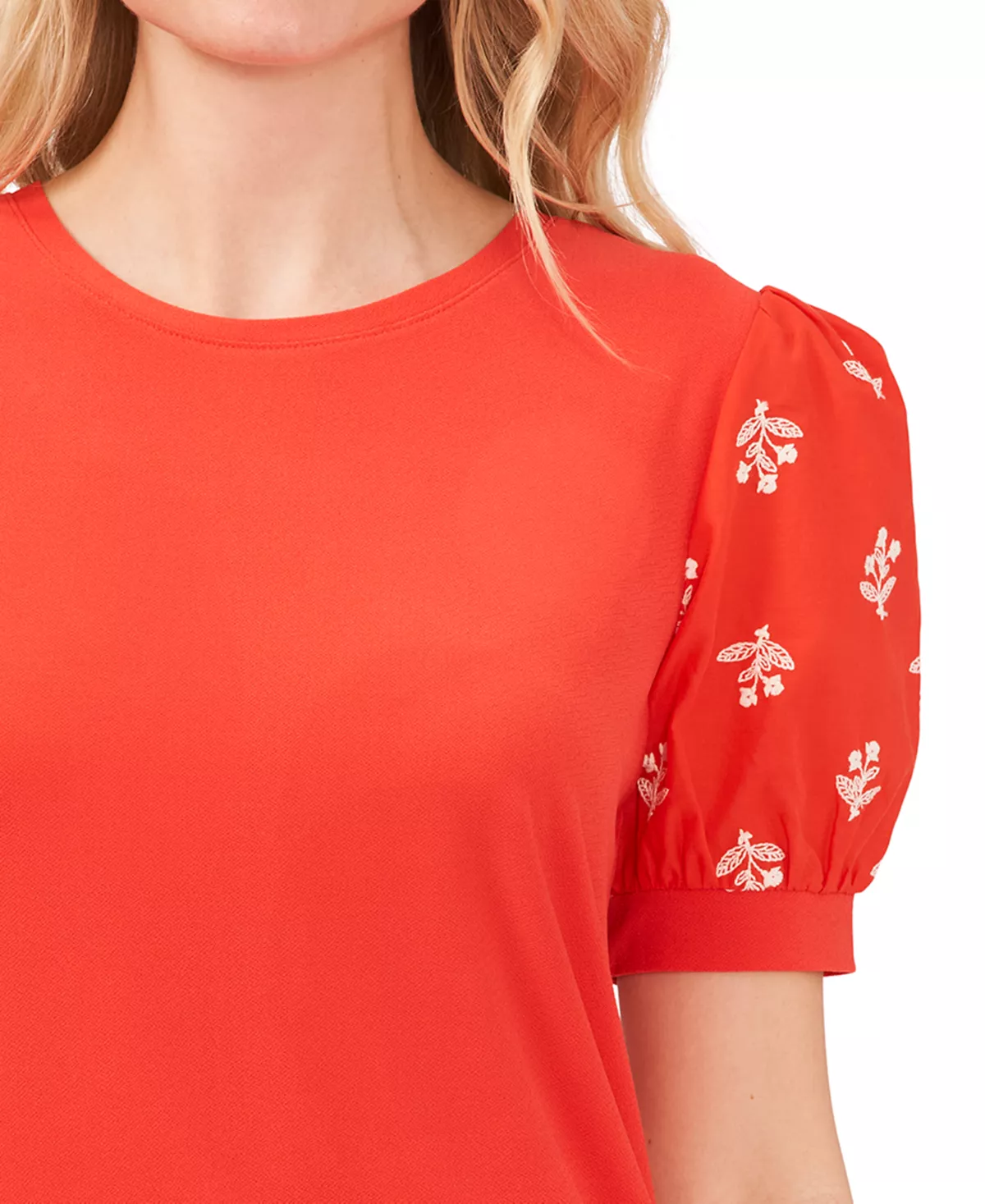 Embroidered puffs sleeves lend a charming finish to CeCe’s blouse