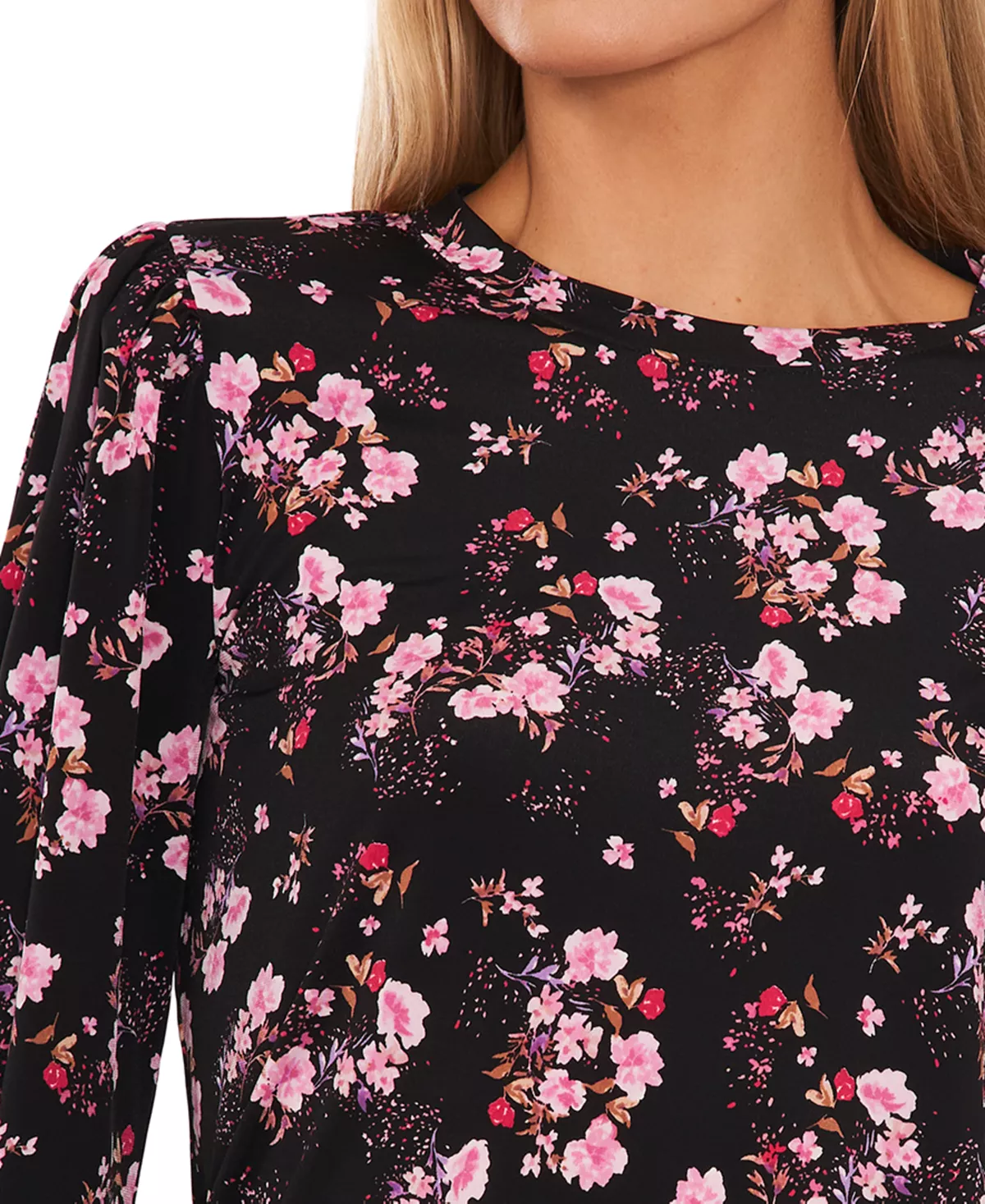 Bold floral prints are the star of this smocked-cuff top from CeCe.