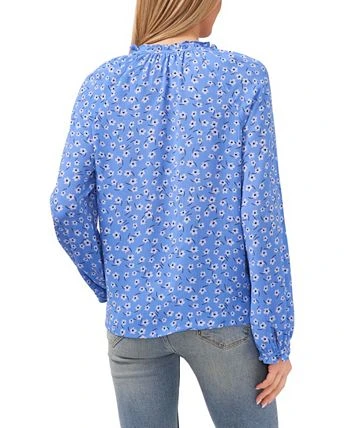 A ditsy floral print dresses up this split-neckline, ruffle-cuff top from CeCe.