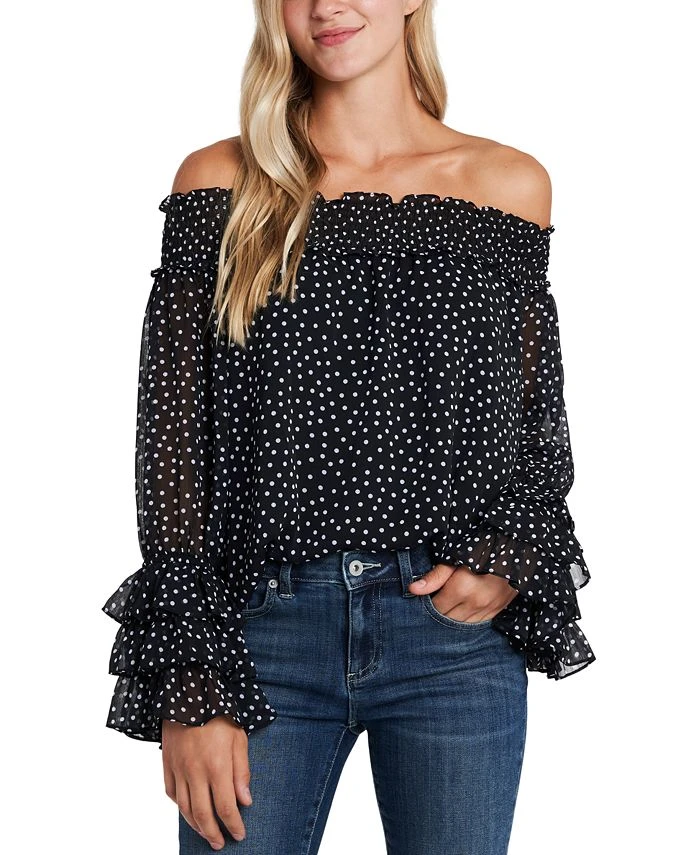Soft and stylishly sweet, florals are always a pretty choice with this off-the-shoulder top from CeCe.