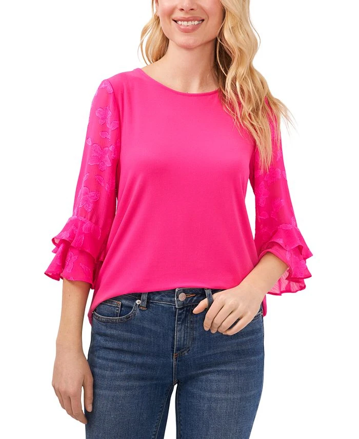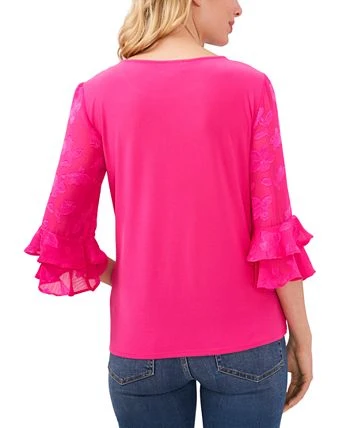 Framed with elegantly dainty, ruffled sleeves, this mixed-media top from CeCe is sure to elevate your wardrobe.