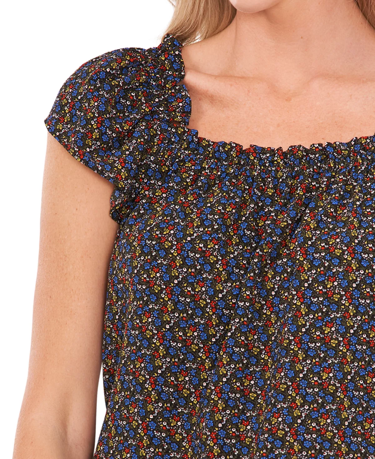 Sweet florals and charming ruffles combine to make this blouse by CeCe an effortless, casualwear staple.