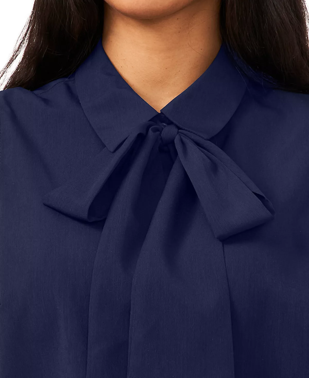 Designed with a sleeveless silhouette for effortless layering, CeCe’s button-front top is fashioned with an adjustable neck bow for a sophisticated pop.