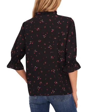 Blooming florals and ruffles aplenty lend a charmingly pretty look to this v-neck blouse by CeCe, finished with tie detailing at the neck, it’s the perfect addition to a chic casualwear collection.