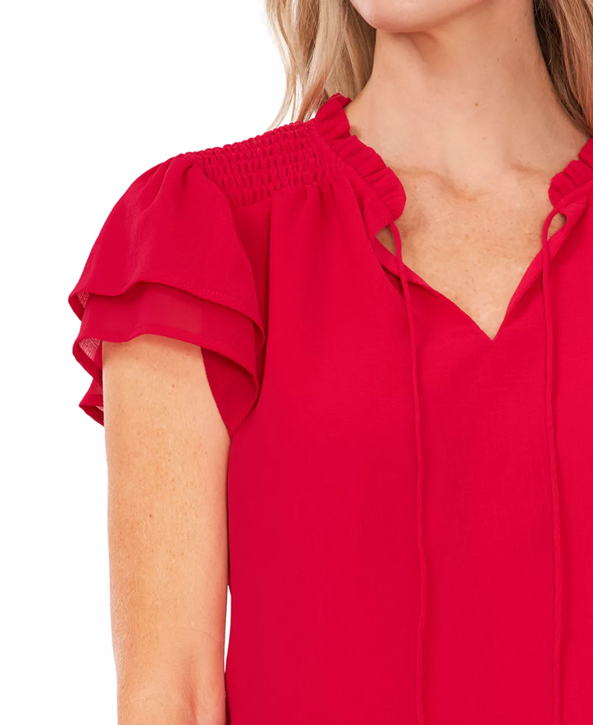 - Short ruffled sleeves
