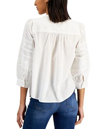 In an embroidered eyelet motif, this Charter Club top in cotton is a weekday staple that’s perfect for warmer days.