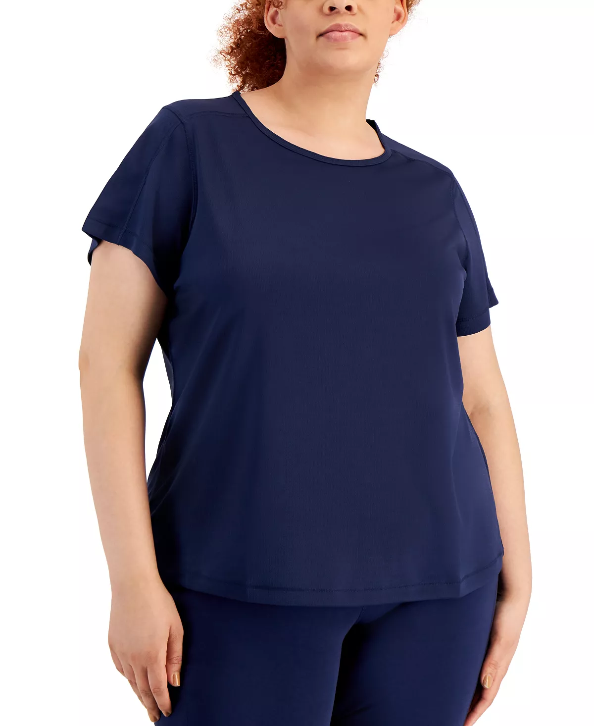Update your sporty wardrobe with this plus size mesh T-shirt from ID Ideology designed with moisture-wicking properties.