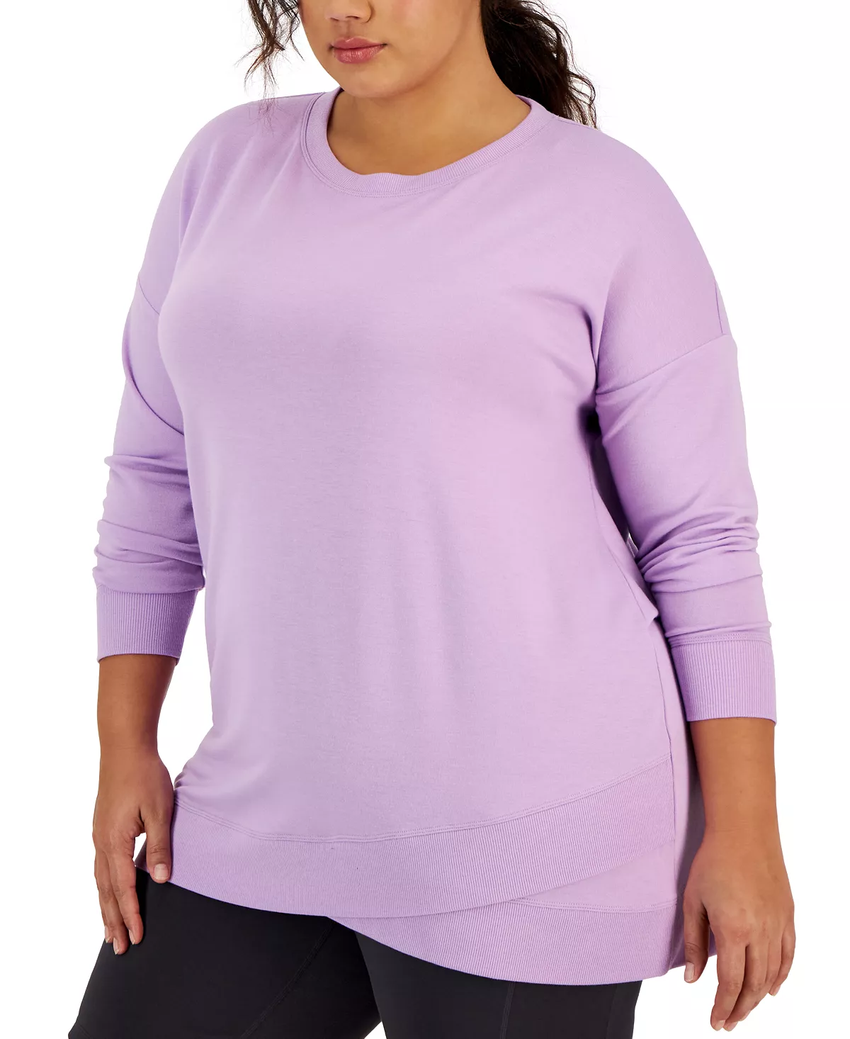 Put a little twist into your go-to look with this ID Ideology plus size top, featuring a crossover hem for a slightly high-low silhouette.