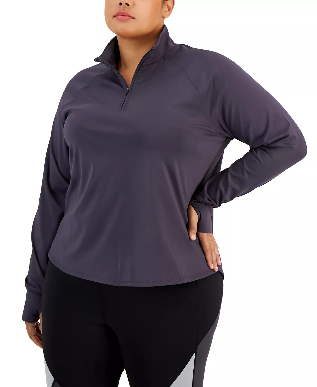 Designed with handy thumbholes and a versatile quarter-zip neckline, ID Ideology’s plus size top can be easily adjusted to be either a sleek mock neckline or polished point collar.