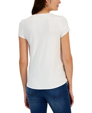 The drapey surplice shape of this this INC International Concepts knit top makes it a versatile addition to any wardrobe.