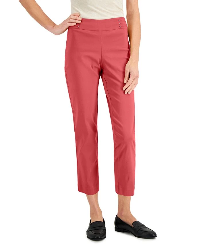 Gleaming studs highlight a sleek waistband, bringing stylish punctuation to these cropped pull-on pants from JM Collection.