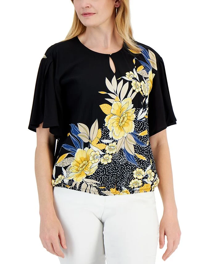 JM Collection Women’s Floral-Print Keyhole Top, Created For Macy’s