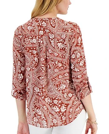 A contrasting print and 3/4-sleeves team up to make magic in this top from Macy’s
