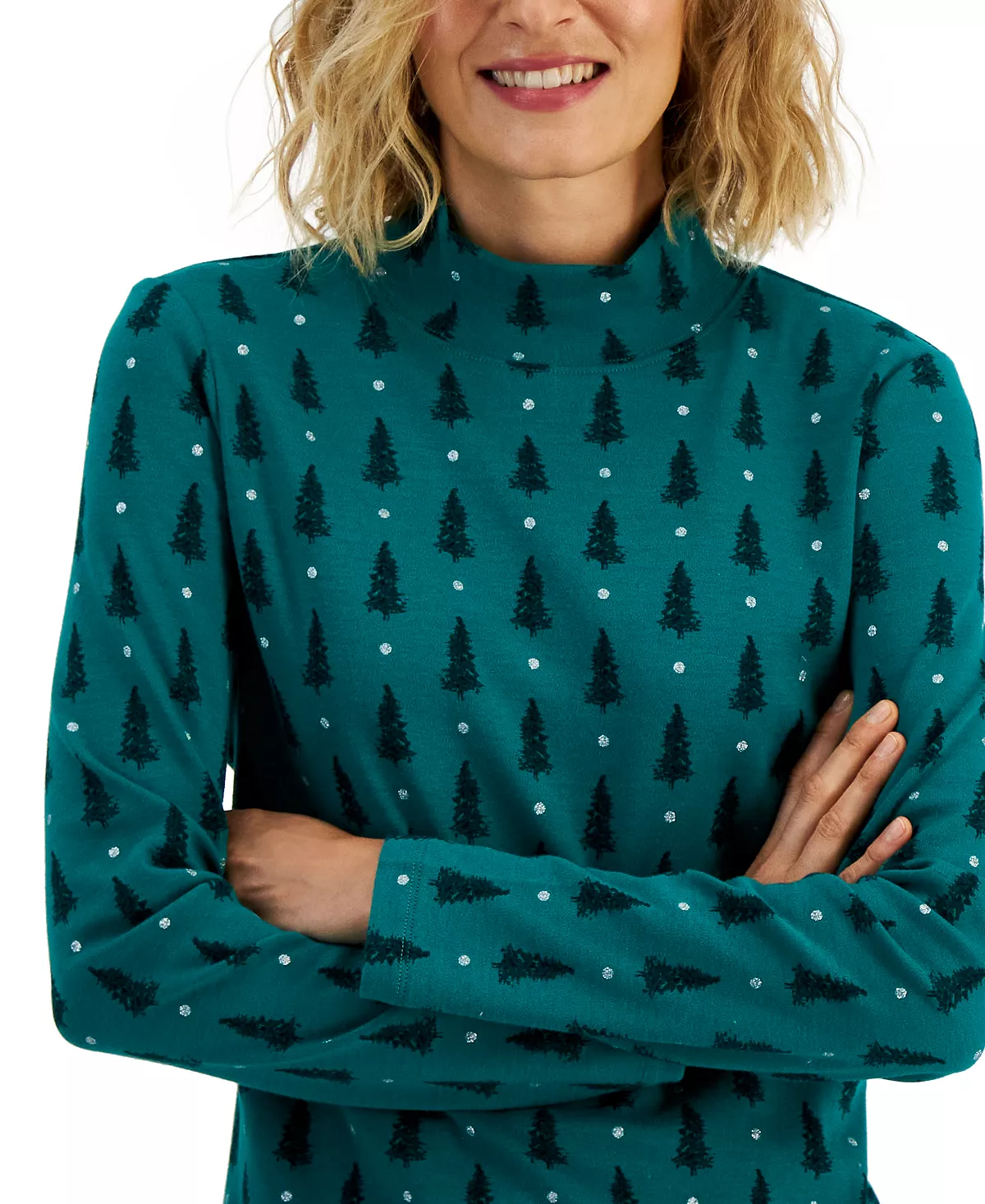 Get festive this season with this layerable top from Karen Scott, featuring a mock-neck for added coverage.