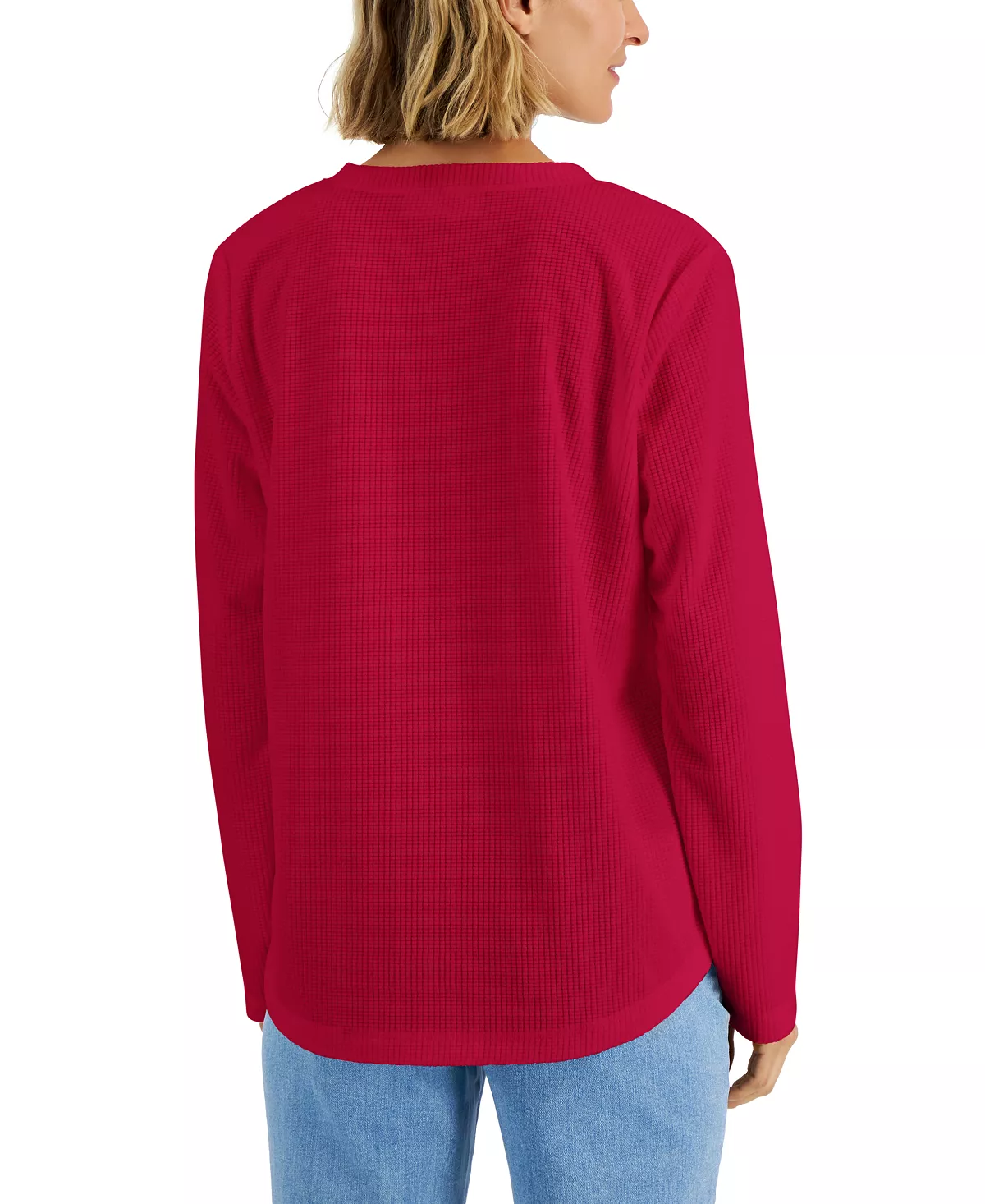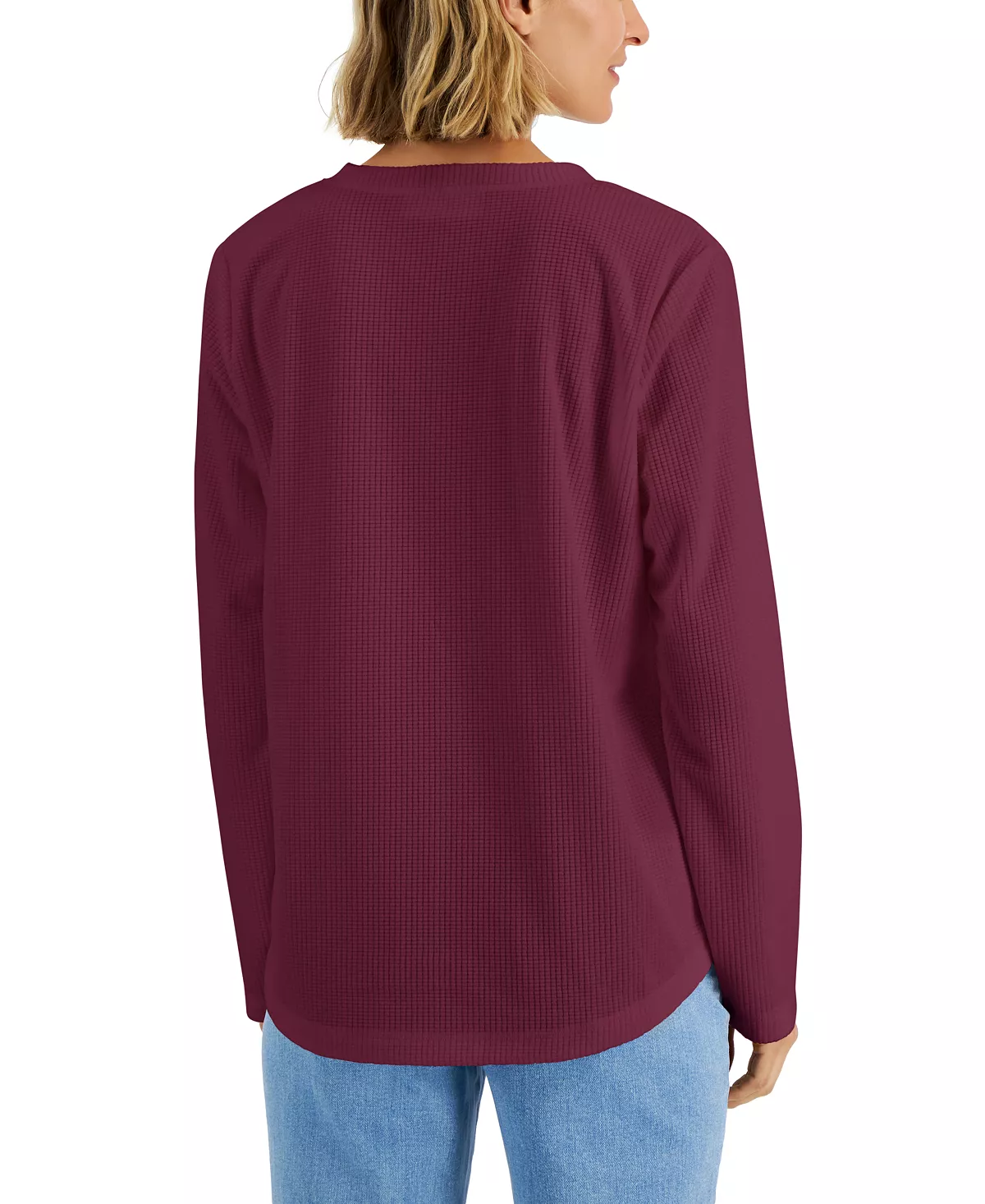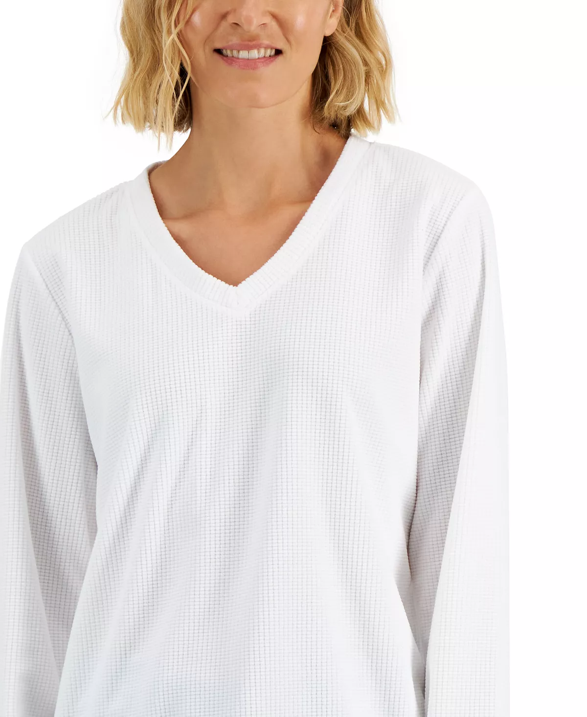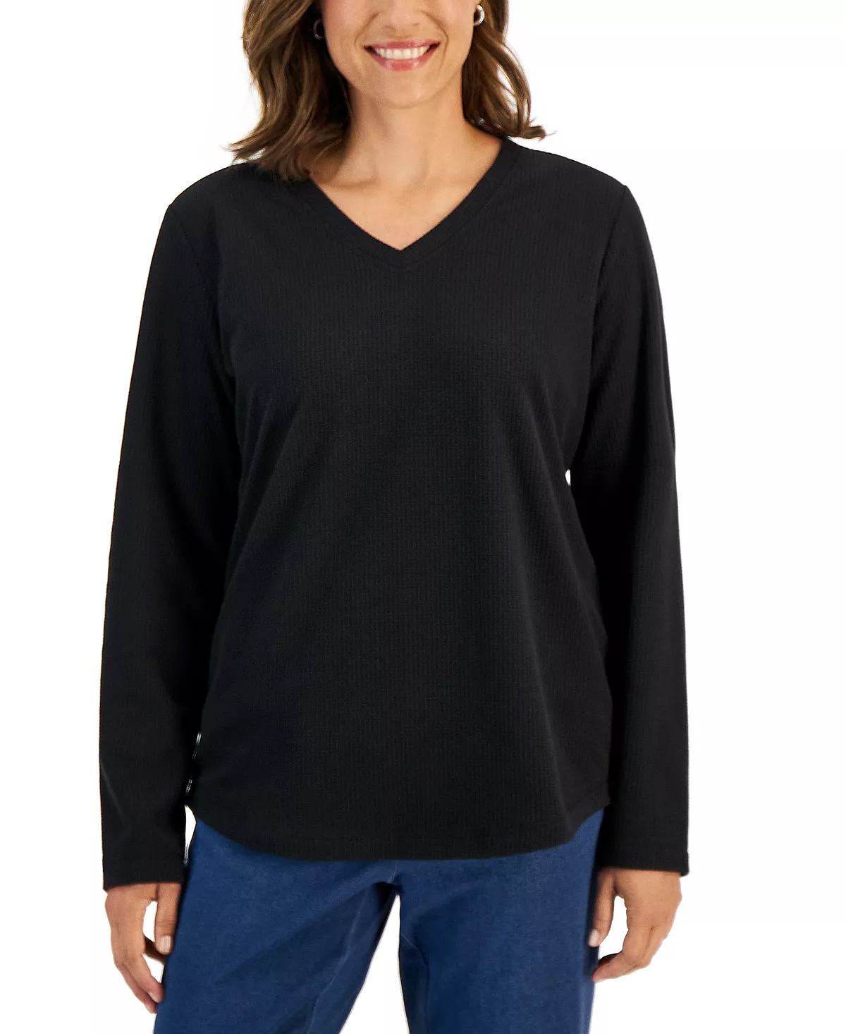 Karen Scott Women’s Textured Microfleece V-Neck Top, Created For Macy’s