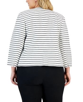 Earn your style stripes in this polished plus size jacket from Kasper designed with a versatile open front and two pockets.