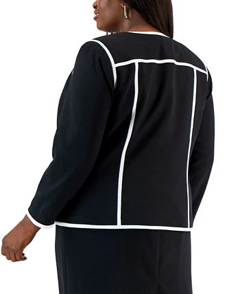 Add interest to your workweek attire with this fashionable plus size blazer from Kasper, featuring sleek details and a colorblocked design.