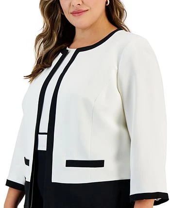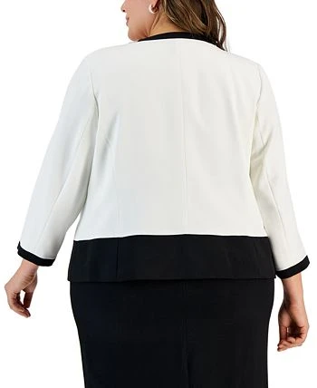Polished contrast-trim frames this classic plus size jacket by Kasper, a timeless staple that adds instant sophistication to your workwear ensemble.