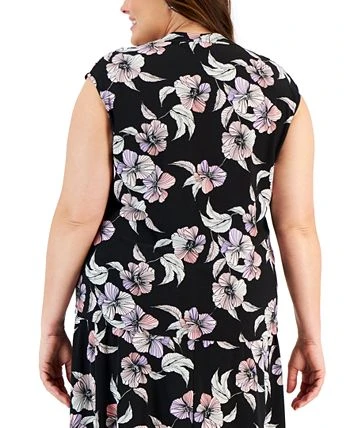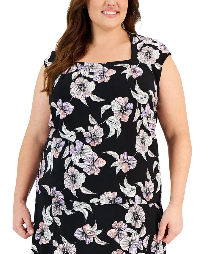 Bold blooms bring fresh flair to workday wear in this plus size square-neck blouse from Kasper.