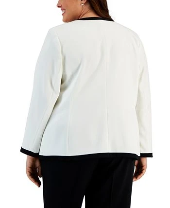 Elevate your professional look with this fashionable plus size blazer from Kasper, featuring an allover chic, contrast trim.