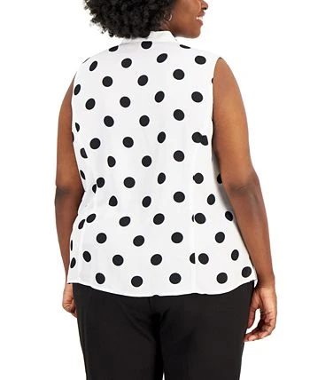 Bring some new life to your work look in this plus size sleeveless top from Kasper, covered in a timeless polka dot print.