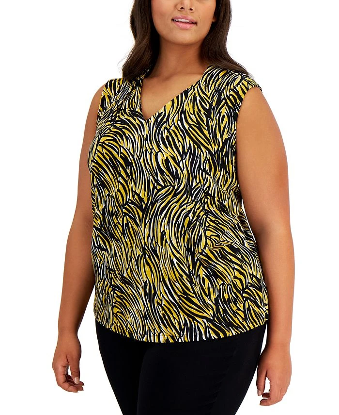 A boldly printed plus size top from Kasper makes any ensemble pop.