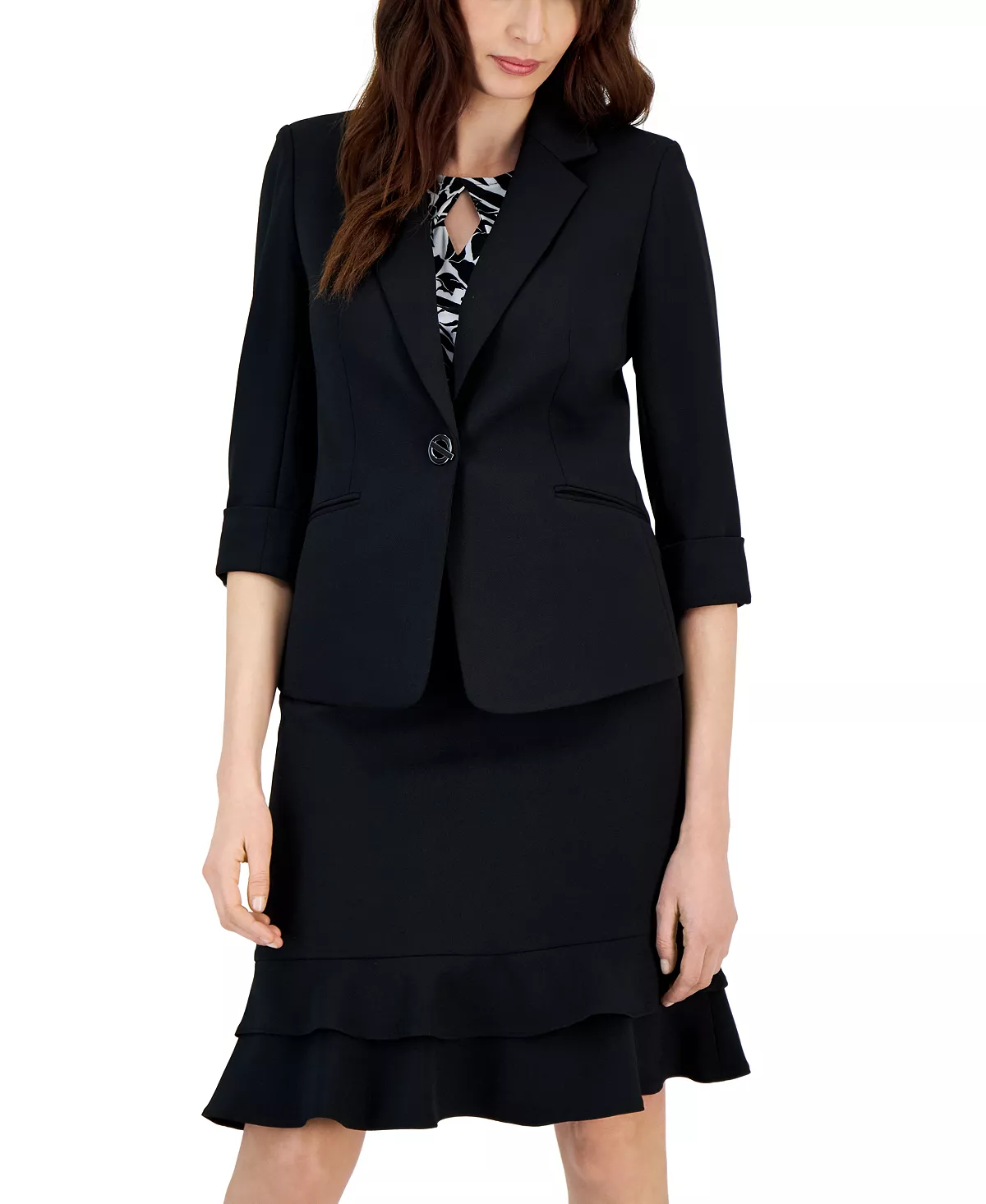 Kasper keeps you professionally polished by upgrading a stylish staple with this single button blazer.