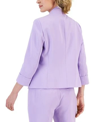 Kasper has the finishing piece to countless suited pants and skirt ensembles with this timeless kiss-front blazer.