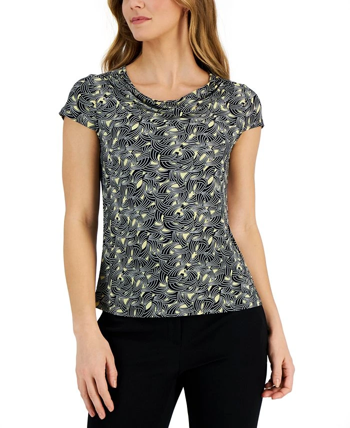 Classically chic, this sleeveless shell top from Kasper combines a delicate cowlneck with a stunning geometric print.