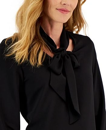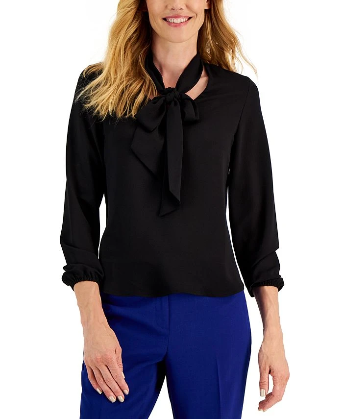 Amp up your professional look with this fashionable bow-neck blouse from Kasper.
