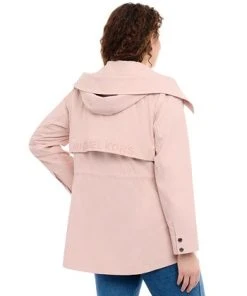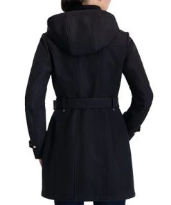 - Mockneck with snapped throat latch, faux-leather trim and faux-fur lining