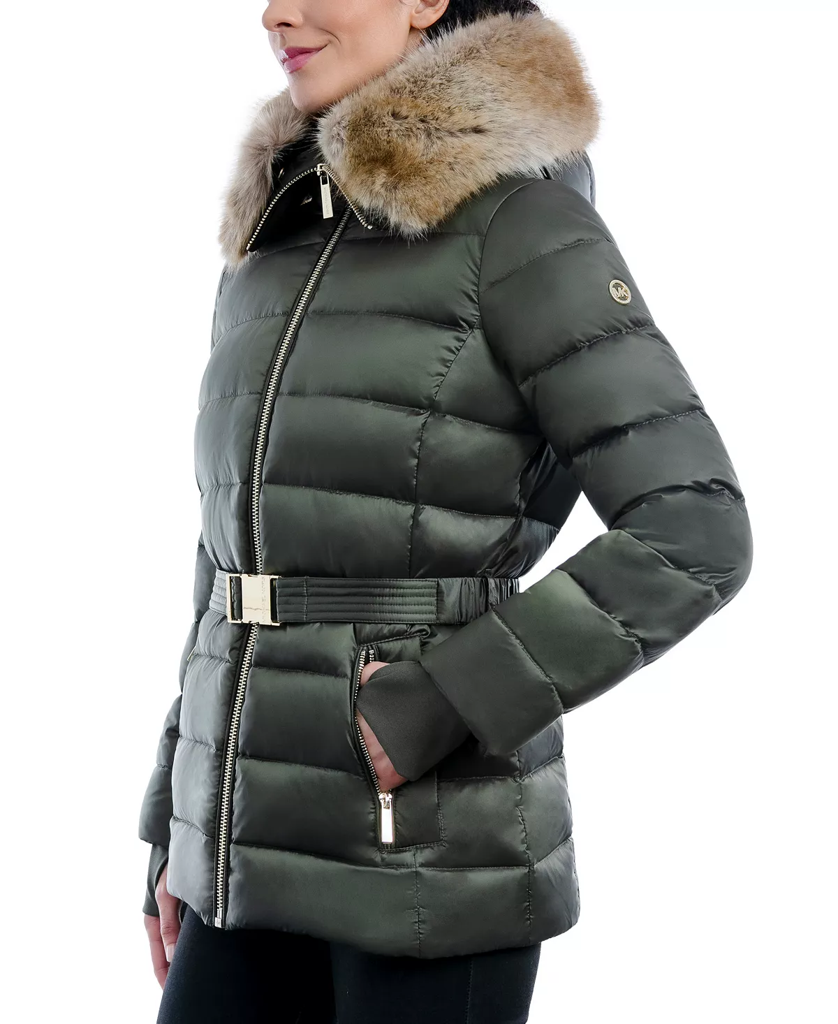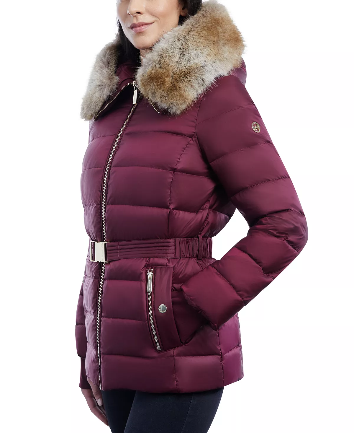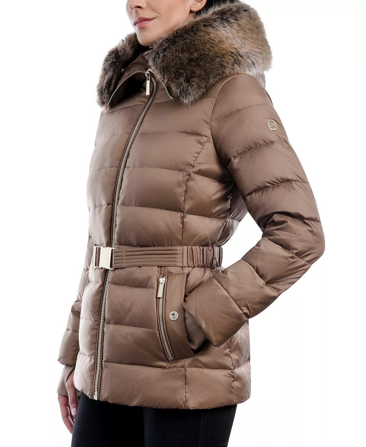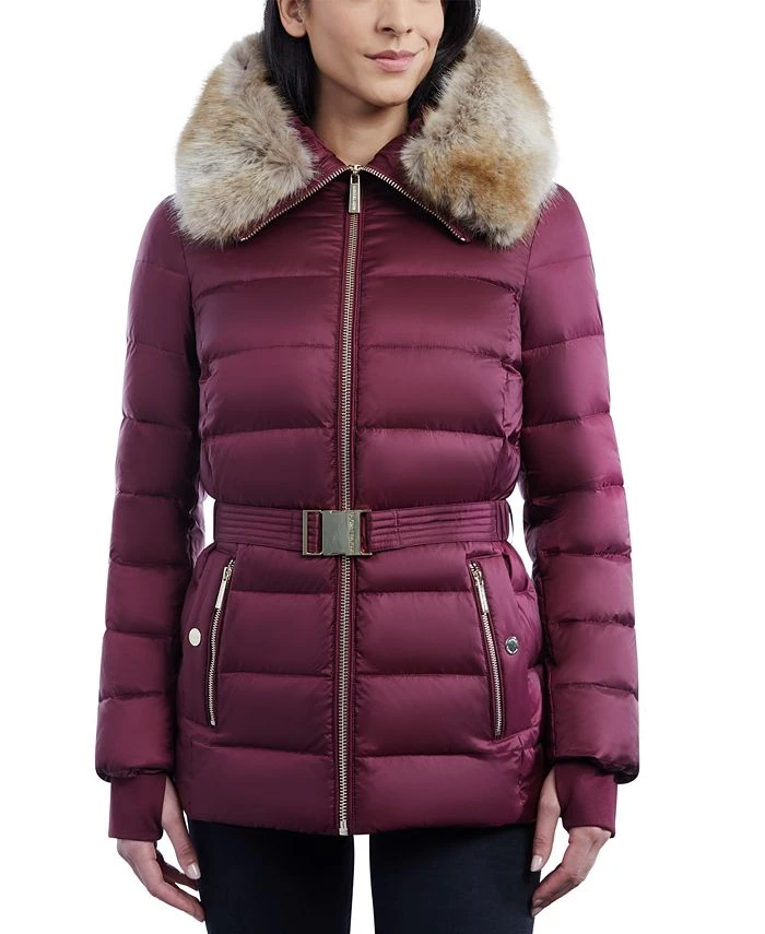 MICHAEL Michael Kors does cold-weather fashion right with this chic puffer coat designed with a luxe faux-fur collar and matching belt.