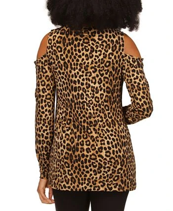 Spotted for sleek style, this MICHAEL Michael Kors cheetah-print knit top features the airy flair of cold-shoulder cutouts.
