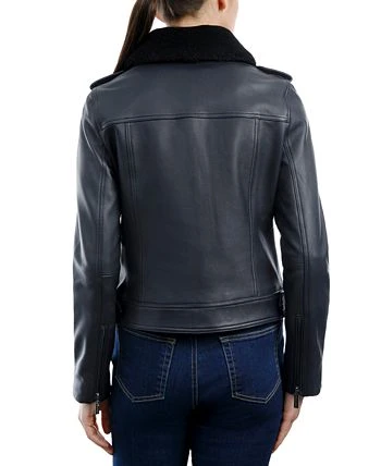 A soft sherpa fleece collar is easily removable (or wearable!) on this sleek leather jacket from MICHAEL Michael Kors.